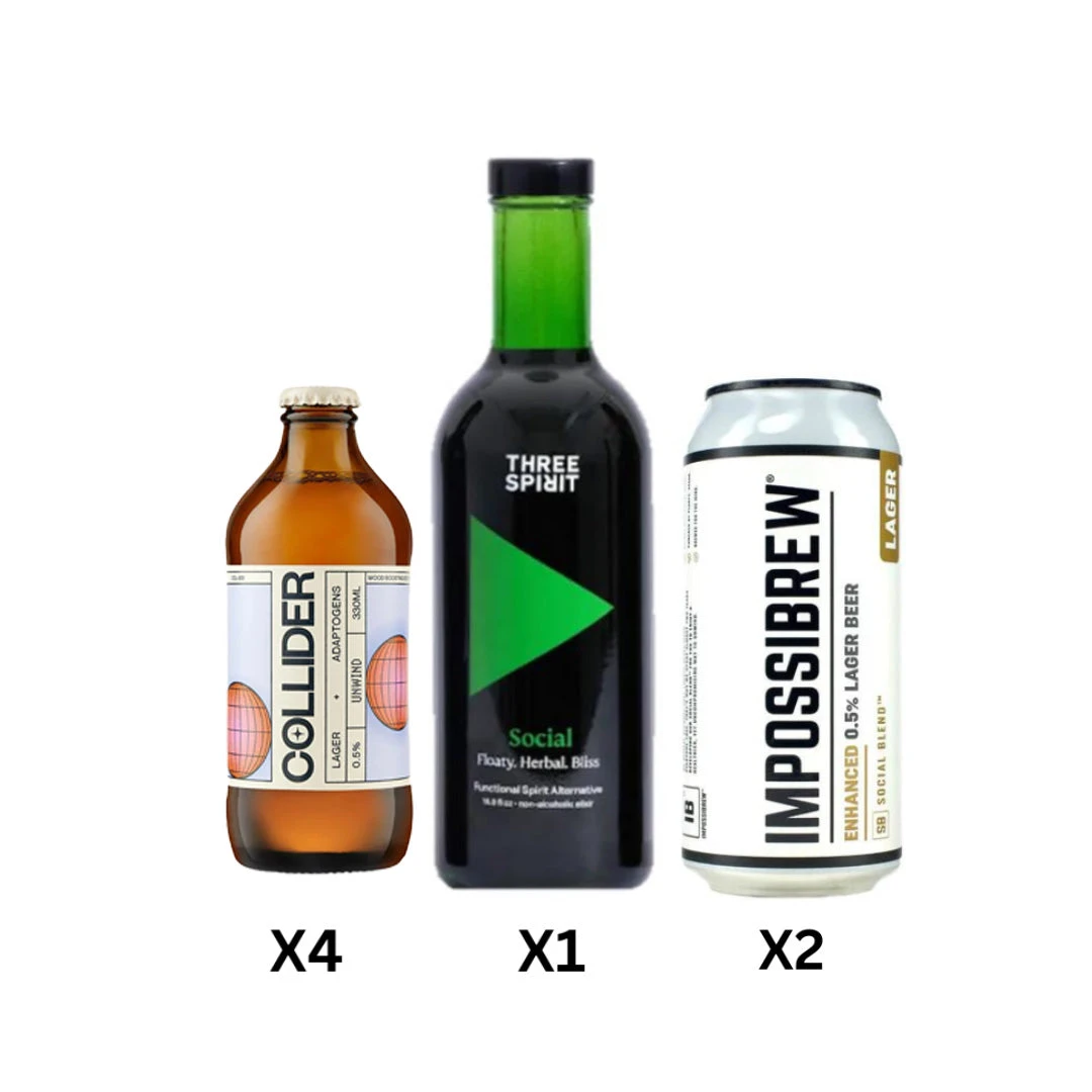 Dive into the unique experience of The Collider Unwind Lager, a revolutionary non-alcoholic beer infused with mood-boosting adaptogens and nootropics. This lager is crafted for those who seek relaxation without compromise, offering a crisp, fulfilling taste without the alcohol content.